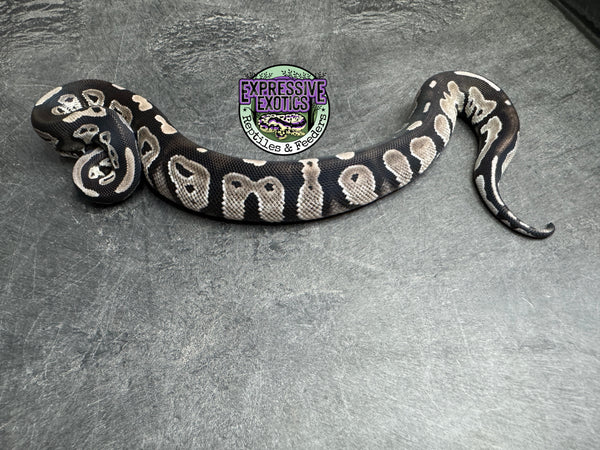 Very nice dark animal! Eating live rats. He has some nice het pied markers. Pairing was Black Head Red Gene dbl het Piebald / Lavender Albino x VPI Axanthic het Piebald. Email me or text me at (850) 305-1447 with any questions or if you are wanting a payment plan. If you do not contact me before purchasing, your order will be cancelled.